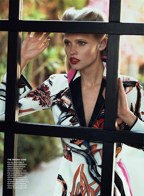 In a story of romantic intrigue named "Spellbound" photographer Peter Lindbergh and fashion editor Grace Coddington work together for a Vogue US’ July issue. Featuring a love triangle with Lara Stone, Frida Gustavsson and actor Alexander Skarsgård–leading lady Lara plays femme fatale to Skarsgård’s quiet, cosmopolitan reserve. While Frida Gustavsson uses her girlish charm as the other woman. Grace Coddington’s glamorous picks from labels such as Marc Jacobs, Balenciaga and Miu Miu conjure dangerous characters in a world of 1940s film noir elegance.